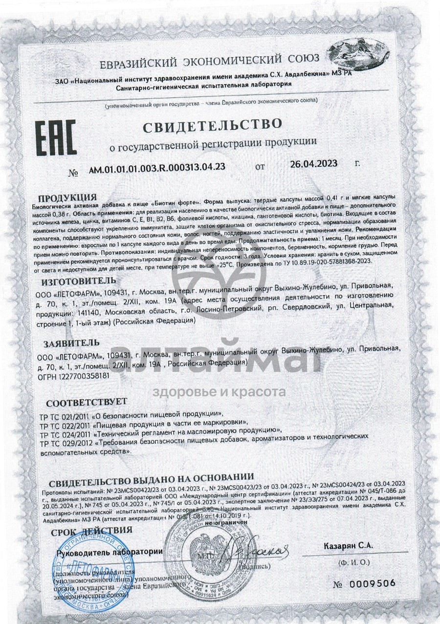 Есть вопросы по товару "Биотин форте Летофарм 60 капсул"?
